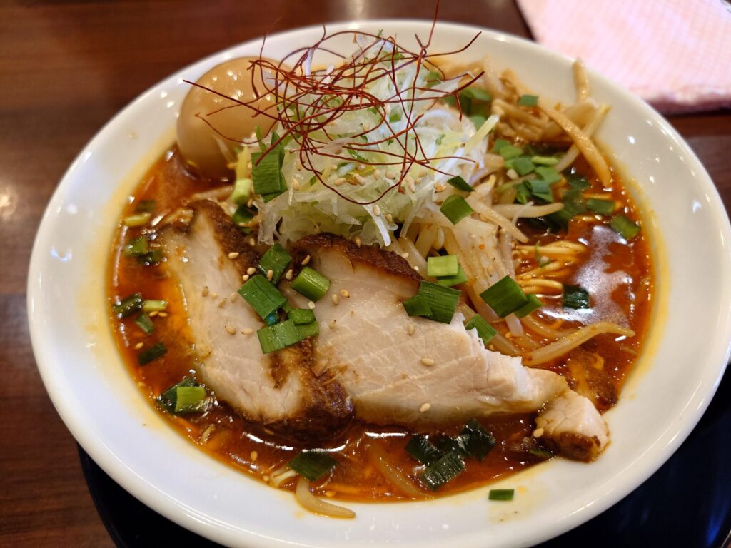 こちら静岡にあるらーめん屋さんで、ラーメン 塩司さんです。いきなり東京を飛びしてしまいましたが、お正月なので特別verです。注文したらーめんは期間限定のもので名前は忘れましたが、結構ピリ辛でした。すごく辛いわけではなく、ちょい辛くらいなので割と食べやすい辛さだと思います。味のほうも美味しく、ずるずるノンストップで啜れちゃいますね。