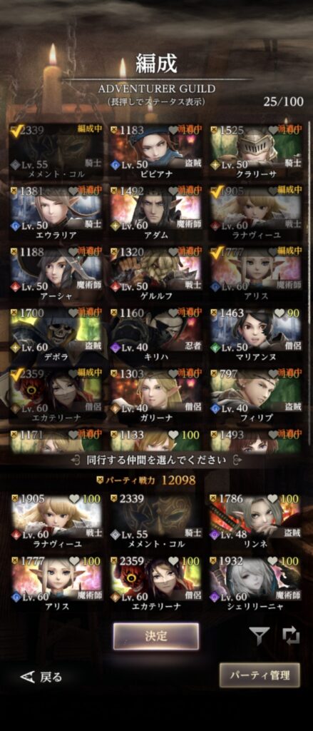 ゲーム画面の中の一つ。こんな風に色んな仲間を編成して攻略していきます